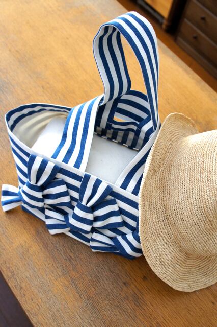 リネンのこなれた風合いで大人かわいいリボントートになりました。