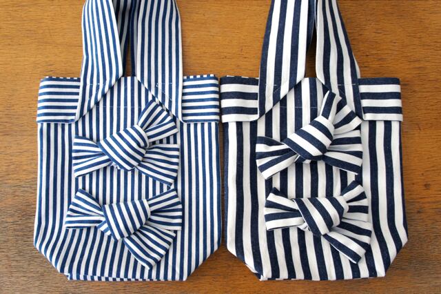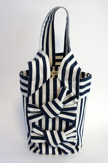 ステッチ止めされた立体感のある持ち手とリボンがあいまってデザインのポイントになっています。