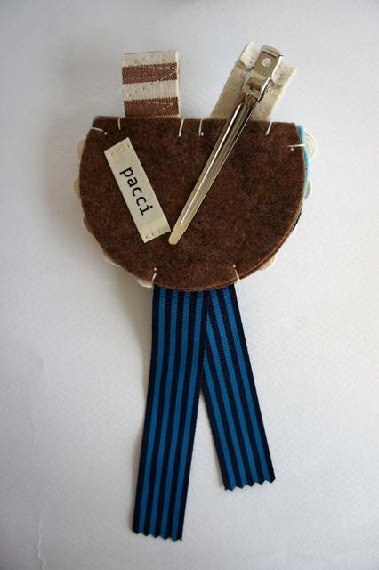 ヨーロッパや日本のフェルトを中心に帆布やフェイクレザーなど様々な素材やモチーフをコラージュ、ダッカールクリップのワッペン出来ました。
