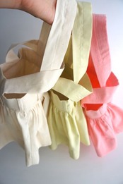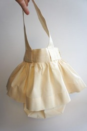 綿のシーチングで作った、たっぷりギャザーのチュチュをイメージした、フワフワかわいいミニトートです。